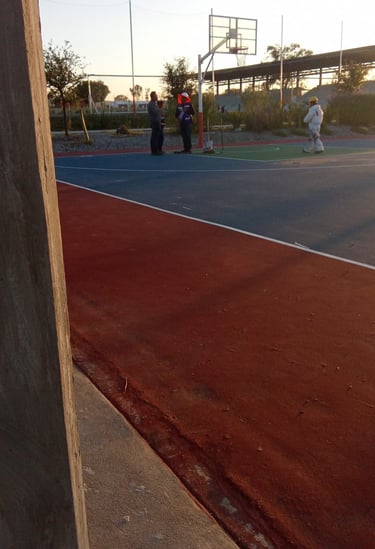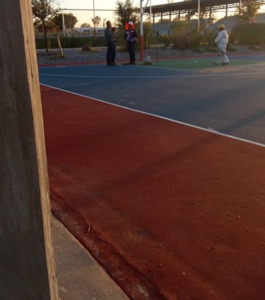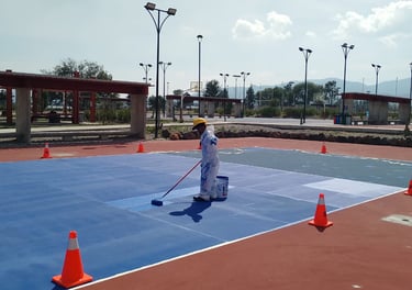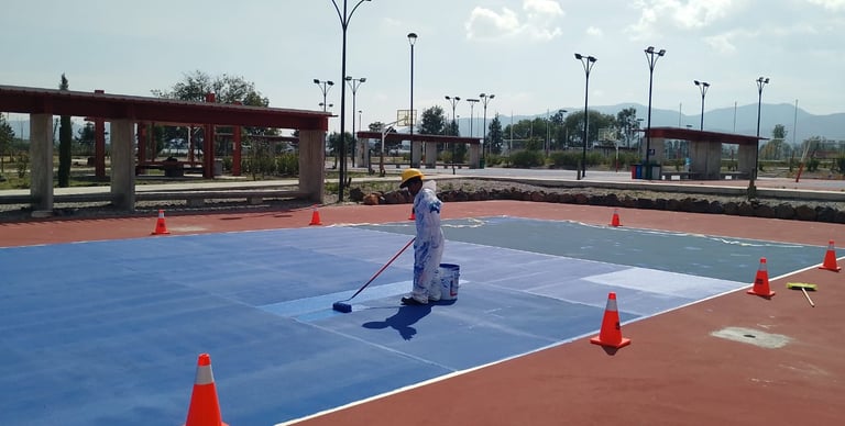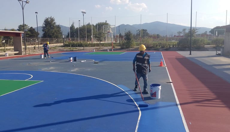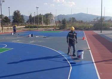 Mantenimiento y aplicación de pintura en canchas deportivas.