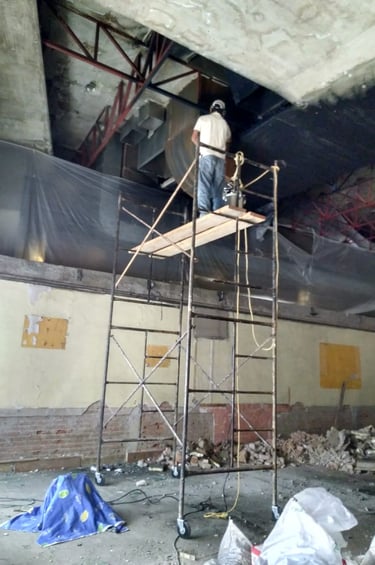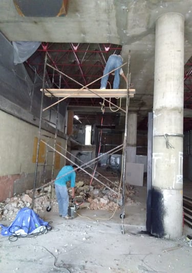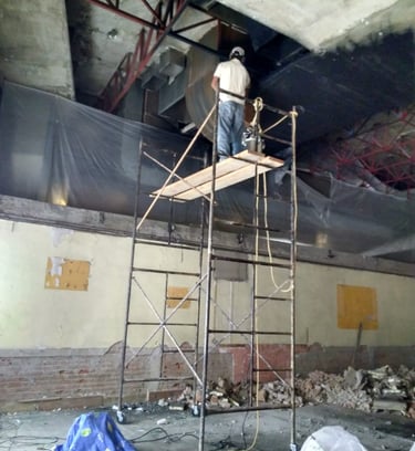 Servicio de retiro y cambio de malla ciclónica, instalación de carpas de emergencia, instalación de ventanas con marcos de aluminio y trabajos varios de mantenimiento de estructuras en oficinas Telmex.
