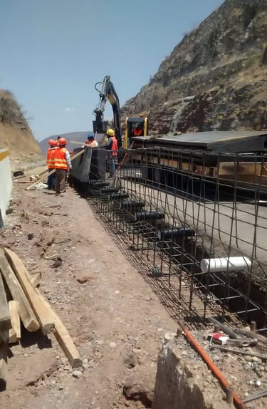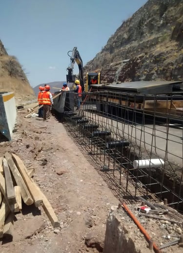 Elaboración de muros de contención y trabajos de pintura en carretera México - Pachuca